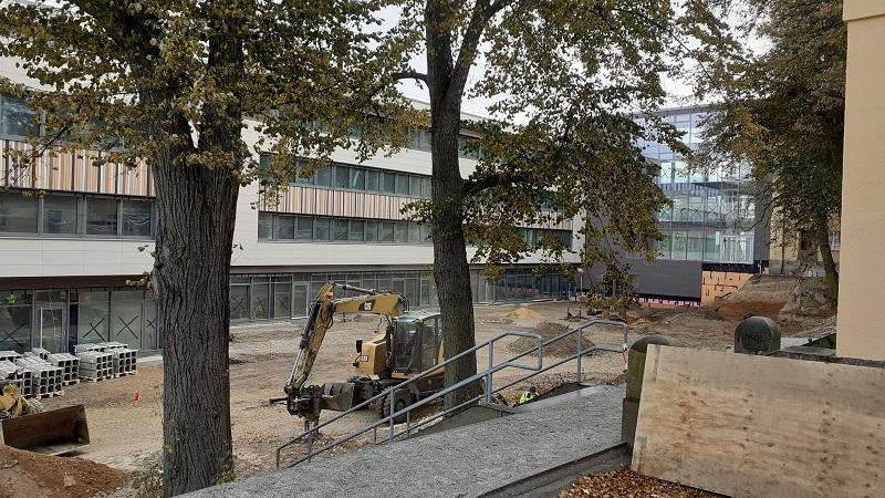 Das Gerüst ist gefallen und der neue Anbau der Lessingschule kann vom neugierigen Auge von außen bestaunt werden. Trotz schwieriger Materiallage und Pandemiesituation sind nur geringe Verzögerungen beim Bau aufgetreten, der im kommenden Frühjahr seine Tore öffnen soll. Zwei Bilder, eines vom nun Innenhof und eines von der Außenseite, stehen hier schon mal als Vorgeschmack auf das kommende Erscheinungsbild.